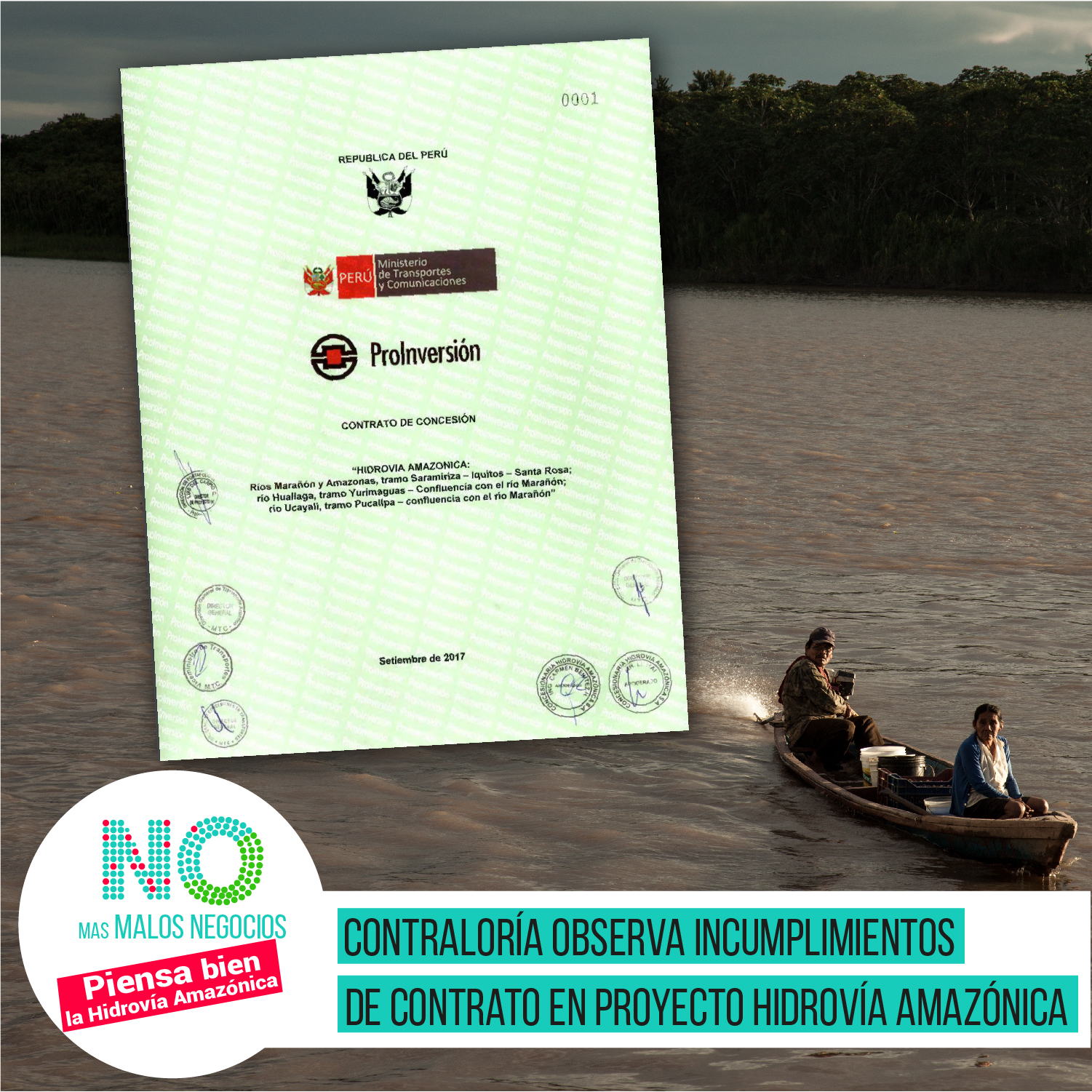 Lima, 8 de agosto de 2019.- La Contraloría de la República, mediante Informe de Hito de Control N° 001651-2019-CG/APP-SCC del periodo de evaluación de 21 mayo al 4 de junio de 2019, informó al Ministerio de Transporte y Comunicaciones el hallazgo de incumplimientos al contrato de la Hidrovía Amazónica, luego del análisis realizado de la información presentada por el MTC, OSITRAN y COHIDRO, empresa a cargo de la concesión de este proyecto.