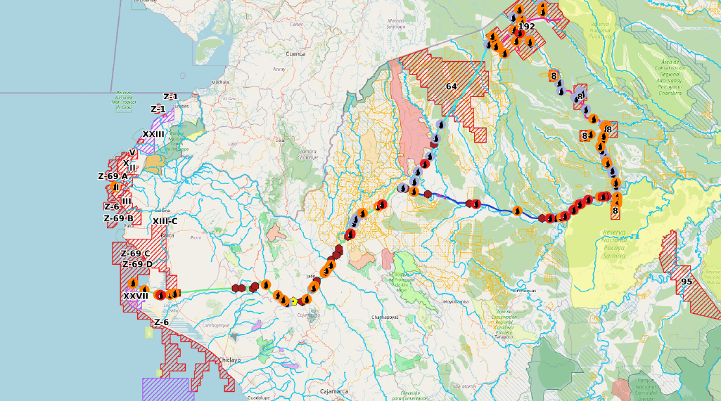 El Mapa interactivo muestra derrames de petróleo en lotes de hidrocarburos en Loreto y en el Oleoducto Norperuano (ONP) desde el inicio de su operación en el año 1977. En el caso del Oleoducto, se muestran derrames a lo largo de los tres tramos del oleoducto: Tramo I, Tramo II y el Ramal Norte. Los datos mostrados provienen del Organismo Supervisor de la Inversión en Energía y Minería – Osinergmin (datos hasta el 2010) y del Organismo de Evaluación y Fiscalización Ambiental – OEFA (datos del 2011-2019). El mapa se actualizará de acuerdo a la disponibilidad de datos adicionales de OEFA sobre los derrames de petróleo.