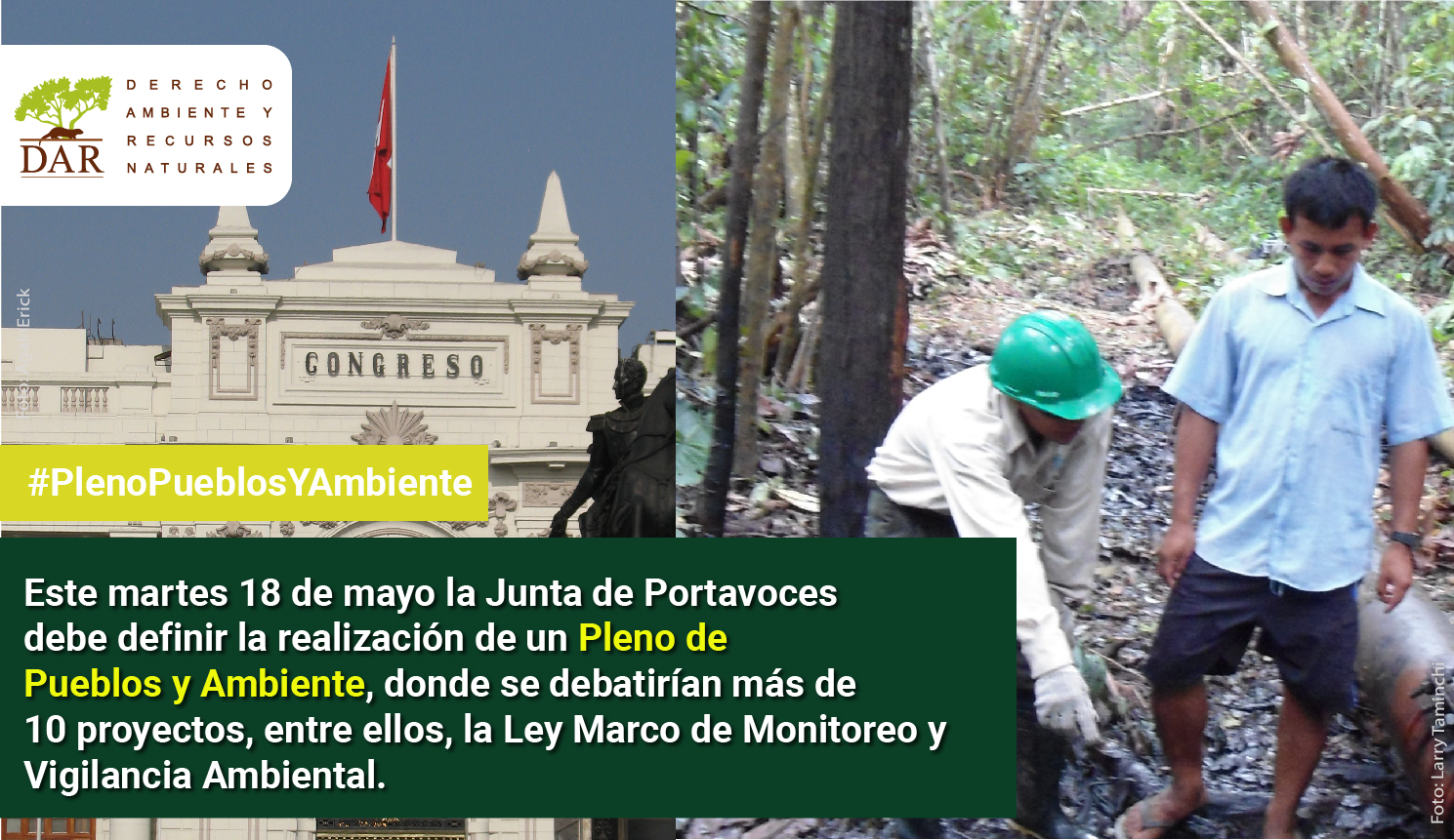 La aprobación de la Ley Marco sobre Monitoreo y Vigilancia Ambiental permitiría resarcir una larga deuda normativa con los vigilantes y monitores ambientales tras cinco años del nacimiento de los proyectos de ley que dieron origen a esta propuesta, en los que la asociación civil Derecho, Ambiente y Recursos Naturales (DAR) ha contribuido mediante aportes técnicos y recomendaciones a la iniciativa del proyecto de Ley.