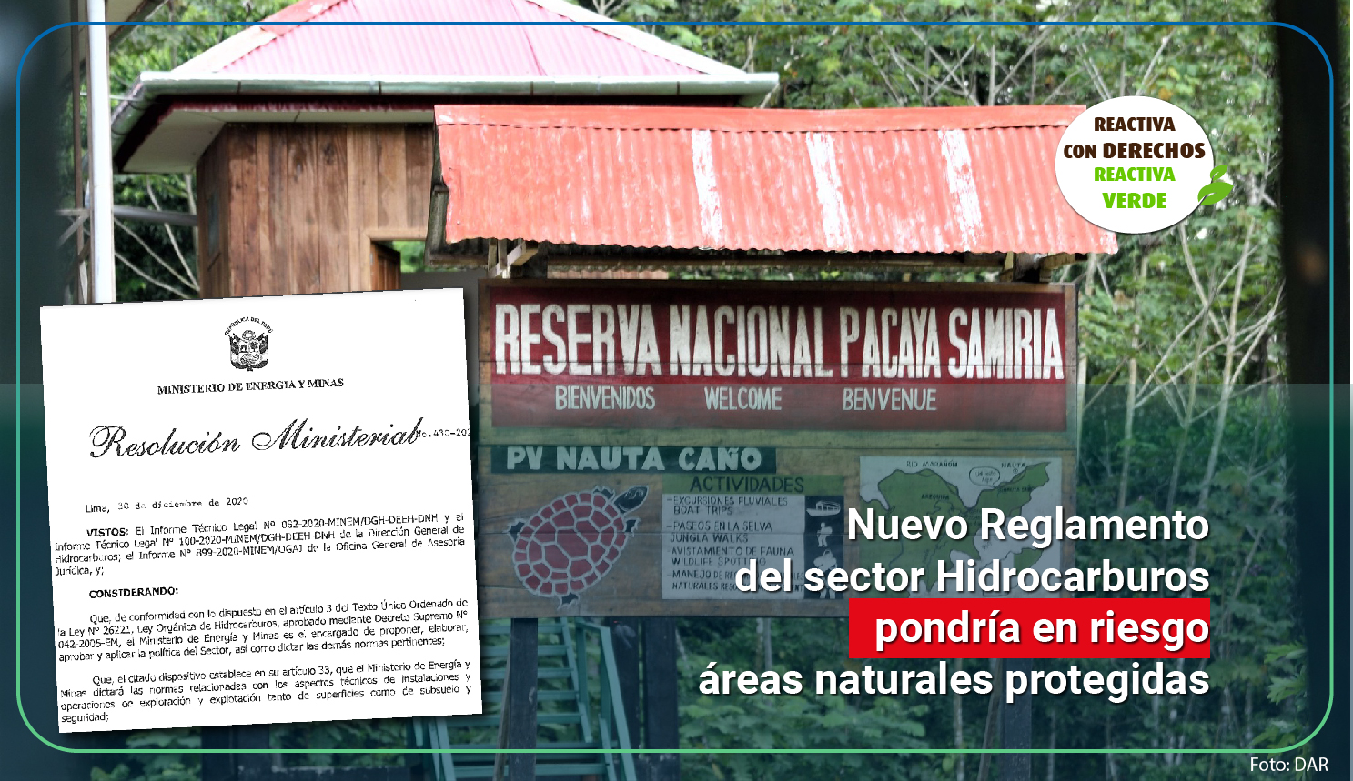 - Derecho, Ambiente y Recursos Naturales (DAR) hizo llegar al MINEM recomendaciones para modificar propuesta normativa, evitando riesgos.